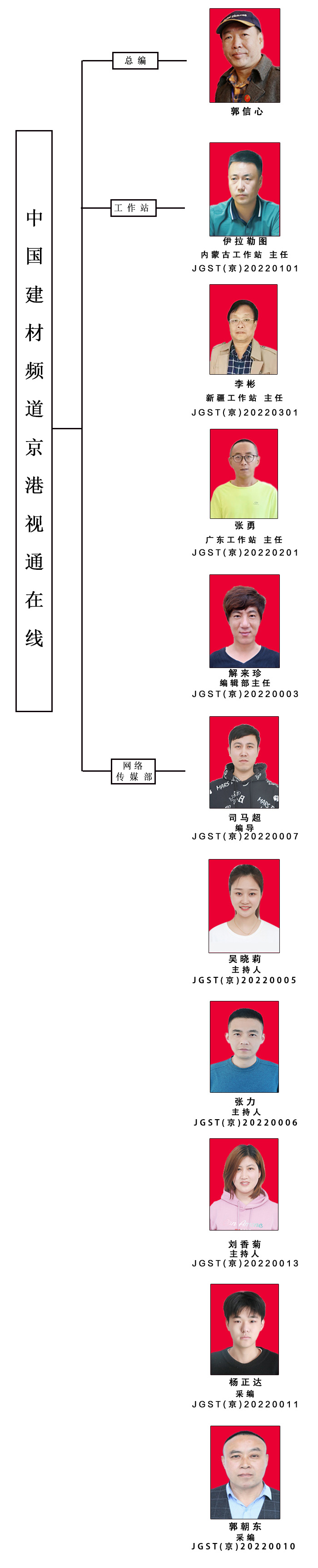 京港視通在線工作室位于中國(guó)建筑材料科學(xué)研究總院內(nèi),是京港視通傳媒(北京)有限公司的一個(gè)璀璨欄目,建材業(yè)動(dòng)態(tài)、視頻(會(huì)議、展會(huì))宣傳的展示平臺(tái),內(nèi)設(shè)有行業(yè)規(guī)范、行業(yè)新聞、名人訪談、名企之家等欄目。公司總監(jiān)郭信心,著名編導(dǎo)、制片人,現(xiàn)任中國(guó)將帥文化論壇組委會(huì)副秘書長(zhǎng)、自1985年從事影片制作工作,先后擔(dān)任《內(nèi)心獨(dú)白》、《黑山路》、《綠色故事》《鳳凰簫》?!秲?nèi)心獨(dú)白》、《老大是咱媽》、《明天的日記》、《所有的事自己扛》、院線電影《韶華常春》、《守望》、《情之殤》?!断M姆较颉贰ⅰ稐盍宓慕忝脗儭?、《探秘中國(guó)彩色寶石》《本草國(guó)學(xué)》等作品的導(dǎo)演、執(zhí)行制片人工作,并策劃了農(nóng)業(yè)部2009年廣西玉林《國(guó)際茶文化節(jié)》、中國(guó)國(guó)際青少年文化交流協(xié)會(huì)2010年《地質(zhì)之光國(guó)際夏令營(yíng)》、2012年全國(guó)人大批準(zhǔn)的大型電影紀(jì)錄片《中華民族》、2013年中國(guó)少數(shù)民族文化教育專項(xiàng)基金《首屆全國(guó)少年兒童民族音樂舞蹈創(chuàng)新藝術(shù)節(jié)》、大型數(shù)字電影紀(jì)錄片《探秘中國(guó)彩色寶石》、大型數(shù)字電影紀(jì)錄片《本草國(guó)學(xué)》等作品。